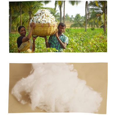 Vores bamser er produceret med omtanke for både mennesker og miljø. Det hele starter med bomuldsplantagerne i Indien, hvor vi får vores økologiske bomuld med OCS100-certificering. Det betyder, at der er taget hensyn til miljøet og arbejdsforholdene på plantagerne.
