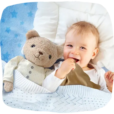 Tyngden fra bamsen giver en let, beroligende trykfølelse, der minder om et kram. Det kan hjælpe børn, der har svært ved at falde til ro, med at sove hurtigere og få en mere uforstyrret nattesøvn.